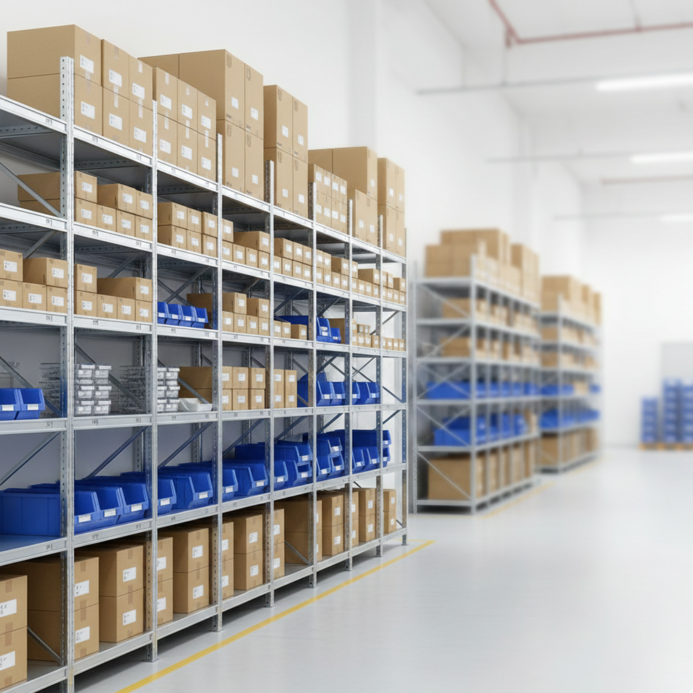 Medium-duty shelving systems supplied for component storage, picking areas, and operational efficiency.